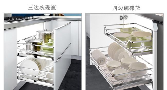 有些五金商出的三边篮和四边篮还细分出碗碟篮和平篮两种。前者有分区,根据不同分区存放碗碟,后者不挑形状,也可以配合专用碗碟架,在购买的时候要问清楚碗碟架是否需要额外付费购买。
